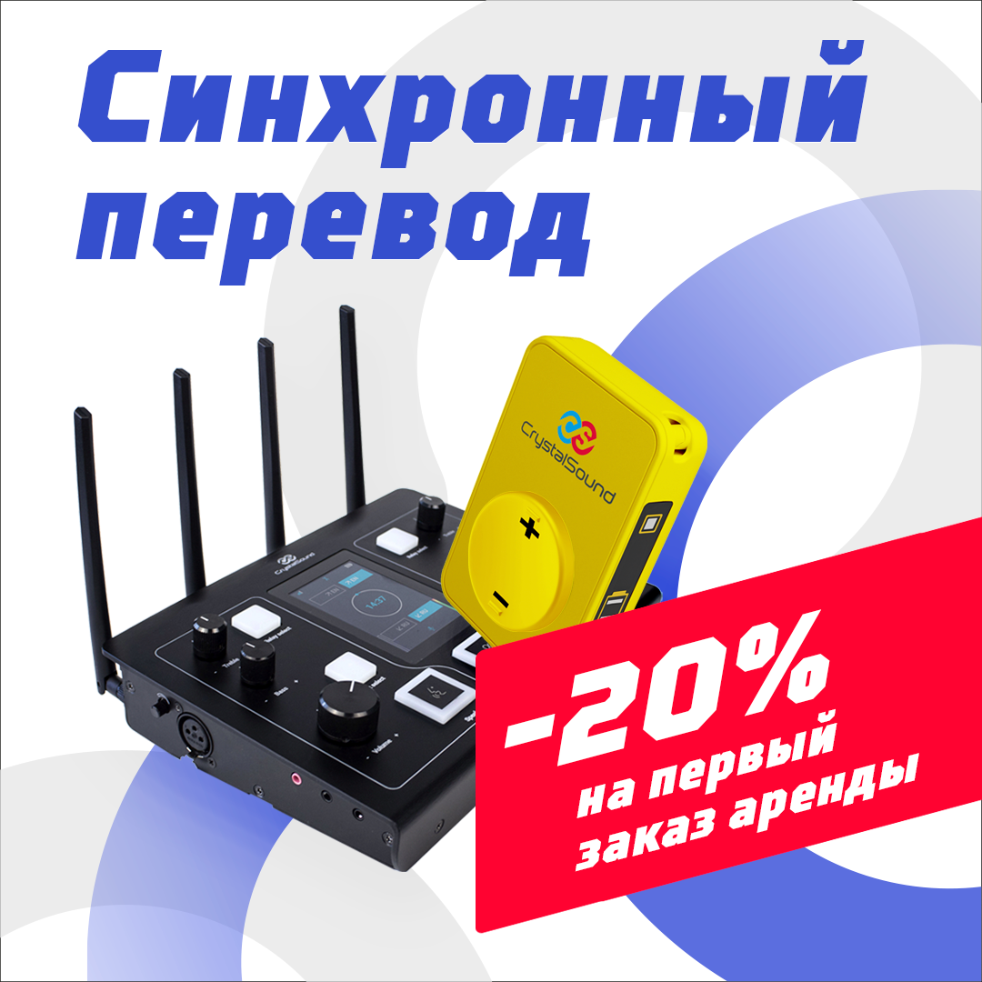 Скидка 20% на первый заказ аренды оборудования для синхронного перевода.